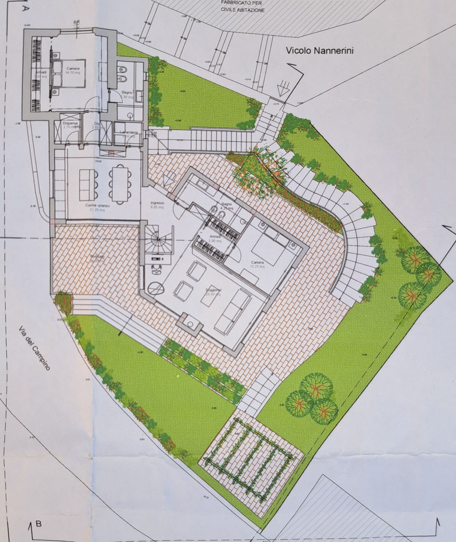 Rosignano Marittimo, in posizione panoramica con bellissima vista mare, all’inizio del centro storico, vendesi terreno edificabile di circa 400 mq dove è possibile realizzare una villetta unifamiliare disposta tutta su uno stesso piano costituita da grande sala con ampie vetrate vista mare, cucina abitabile collegata direttamente al porticato dove poter mangiare fuori, 2 camere matrimoniali, 2 bagni, ripostiglio, collegamento interno con il piano seminterrato adibito a garage. Quanto descritto si riferisce ad un progetto indicativo che potrà essere personalizzato o modificato. Attualmente è stata realizzata una parte dell’abitazione e del locale garage, il prezzo si riferisce allo stato attuale della costruzione.€ 130.000 Rif. S23